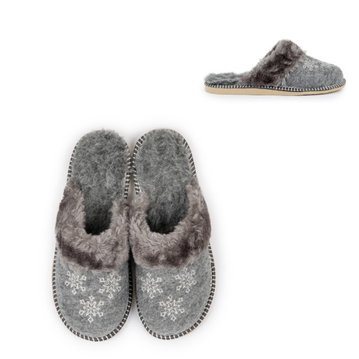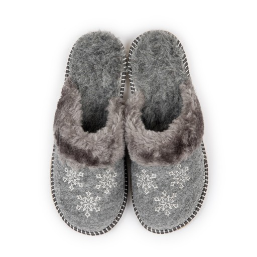 - Pantofle ozdobione są uroczym haftem w kształcie śnieżynek - idealne na zimę,