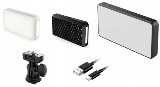 - Mini ekran LCD wyświetlający informacje o temperaturze barwowej, mocy oświetlenia, poziomie naładowania baterii