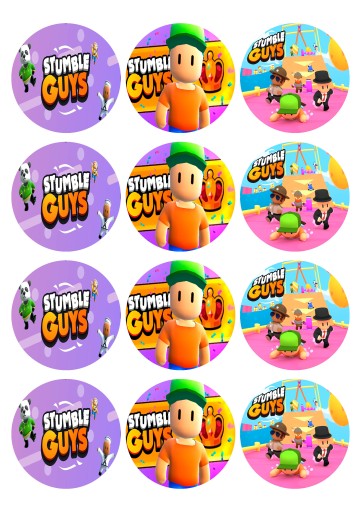 Jadalny opłatek waflowy na babeczki z motywem: STUMBLE GUYS
