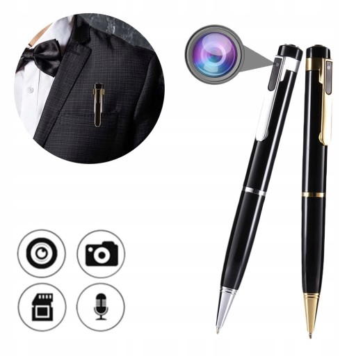 Kamera szpiegowska o wysokiej rozdzielczości nagrywania filmów 1920 x 1080 px ukryta w bardzo eleganckim długopisie. Długopis ten posiada ponadto funkcję robienia zdjęć, nagrywania dźwięku lub czytnika kart pamięci. Oczywiście nadaje się również do pisania, aby nie wzbudzić niczyich podejrzeń.