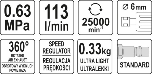 SZLIFIERKA PNEUMATYCZNA PROSTA 6mm YATO YT-09633