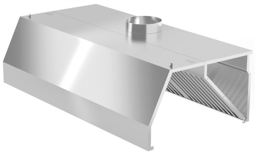 - Wysokiej jakości okap gastronomiczny przyścienny trapezowy wykonany ze stali nierdzewnej