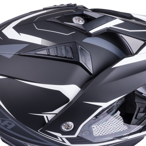 Kask CO3 posiada demontowalną ochronę podbródka oraz deflektor nosa co zapewnia bezpieczeństwo podczas jazdy.