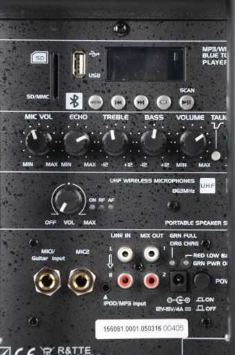z 10" głośnikiem o maksymalnej mocy 500W. Model wyposażony został w funkcję odtwarzania za pomocą odbiornika BLUETOOTH. Umożliwia ona pobieranie plików audio z telefonu, tabletu czy laptopa bez zbędnych połączeń przewodowych. Takie rozwiązanie odtwarzania muzyki będzie dużym ułatwieniem dla instruktorów sportowych i tanecznych, prezenterów, dla wszystkich tych, którym zależy na szybkiej i łatwej konfiguracji sprzętu z odtwarzaczami multimedialnymi z Bluetooth. Oprócz tego znajdziemy tu również wbudowane gniazdo USB oraz slot SD poprzez które możemy odtwarzać pliki MP3 zapisane na standardowych nośnikach.
