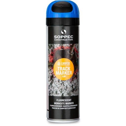 Track Marker to farba fluorescencyjna w aerozolu przeznaczona do wykonywania oznaczeń na różnych nawierzchniach (żwir, piasek, trawa, asfalt,drewno czy kamień). Z jej pomocą wykonamy widoczne, odblaskowe oznaczenia, podkreślając niebezpieczne strefy, zaznaczając pole pod wykop lub znacząc dokonane pomiary. Oznakowanie tą farbą utrzymuje się na znaczonym obszarze do 3 miesięcy.