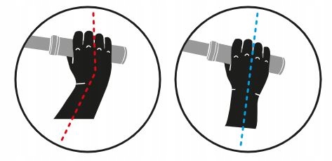 Zwykłe kierownice mają mniejsze wykrzywienia do tyłu. Nadgarstek dziecka jest zgięty i w nienaturalnej pozycji. Kierownica Naloo ma wygięcie do tyłu 12°. Pozycja dłoni dziecka jest ergonomiczna i naturalna co w rezultacie daje rozluźnione stawy dłoni i barków.