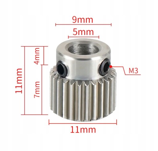 Radełko ekstrudera oś 5 mm filament dowolny - 1.75 mm, oraz 3,0 mm. do takich drukarek jak: Creality Ender 3, Ender 3 Pro, Ender 3 V2, Ender 5/5 Pro, CR-10/10S, oraz wielu innych w których silnik ekstrudera posiada oś o średnicy 5 mm.