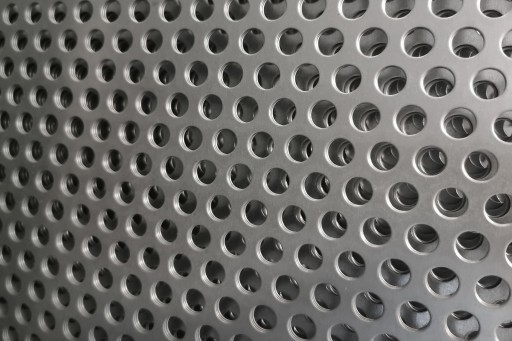 Blacha perforowana ocynkowana (ocynk ogniowy srebrny) z oczkami okrągłymi w układzie mijanym.