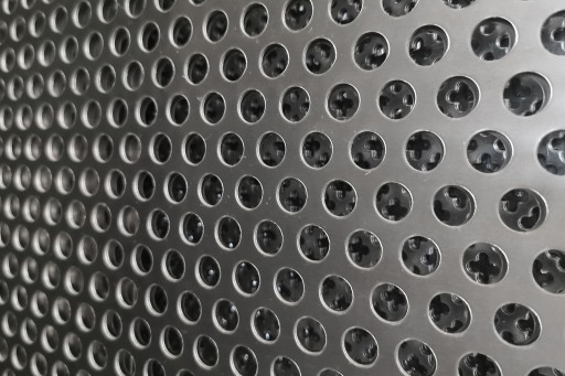 Blacha perforowana stalowa (surowa) z oczkami okrągłymi w układzie mijanym.