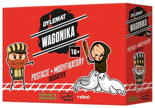 Dylemat wagonika: Postacie i modyfikatory to pokaźny zestaw kart, które wyniosą Wasze rozgrywki na zupełnie nowy poziom! W rozszerzeniu znajdziesz 100 nowych okropnych postaci i 100 nowych nawet okropniejszych modyfikatorów, które uczynią rozjeżdżanie ludzi na torach jeszcze ciekawszym. Oczywiście wszystko w ramach czarnego humoru, ironii i żartów rodem z internetowego komiksu Cyanide and Happiness. Ostrzegaliśmy!