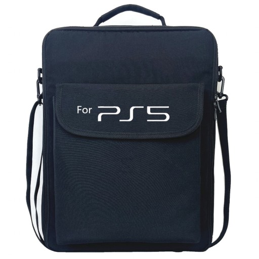 Pomieści konsolę oraz najpotrzebniejsze akcesoria. Torba w kolorze czarnym z białym nadrukiem PS5 na froncie. Wyposażone w zabezpieczające paski w środku, przez co nie musisz się obawiać o uszkodzenie konsoli podczas transportu.