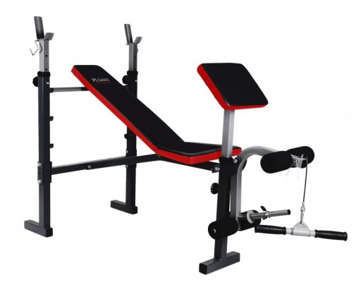 SPECYFIKACJA: • wytrzymała stalowa rama o profilu 38 x 38 mm • regulacja kąta nachylenia oparcia -20° +45° • regulacja wysokości stojaków pod sztangę • przyrząd do ćwiczenia nóg i bicepsów • modlitewnik z regulacją wysokości • dopuszczalne obciążenie stojaka pod sztangę: 120 kg • dopuszczalne obciążenie przyrządu do ćwiczenia nóg: 60 kg • maksymalna waga użytkownika: 90 kg • wymiary ławki (dł./szer./wys.) – 145/70/124 cm