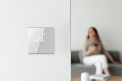 - Posiada możliwość automatyzacji na podstawie funkcji grzania - grzeje/nie grzeje, czyli możliwe jest dodanie zewnętrznego przekaźnika, który będzie załączał się zgodnie ze stanem grzania termostatu