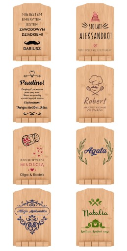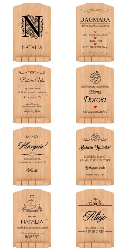 Nie wiesz, co kupić dla kucharki na wyjątkową okazję? Spersonalizowany pulpit pod książkę to idealny pomysł na prezent dla bliskiej osoby. Przedmiot wykonany jest z solidnego drewna bambusowego. Nasz oryginalny pulpit kształtem przypomina klasyczną deskę do krojenia. Sprawdzi się w roli stojaka na książkę kucharską, a także inną literaturę czytywaną w kuchni przez miłośniczkę gotowania. To propozycja dedykowana szczególnie dla tych, którzy nie rozstają się z czytaną książkę nawet na minutkę i zaliczają kolejne rozdziały powieści w czasie oczekiwania na zakończenie pracy piekarnika. Wybierając prezent od Murrano, tworzysz przestrzeń inspirującą szefa kuchni do tworzenia kolejnych smakowitych arcydzieł, które zachwycą wszystkich gości spożywających posiłek. Dopasuj upominek do hobby i zawodu. Wybierz projekt kolorowego lub jednolitego nadruku i opracuj spersonalizowaną dedykację dla kuchennego mola książkowego na parapetówkę i nie tylko!