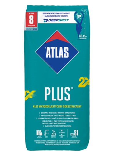 - ATLAS PLUS produkowany jest w postaci suchej mieszanki najwyższej jakości spoiwa cementowego, kruszyw oraz specjalnie dobranych środków modyfikujących.