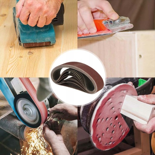 - Wymiary szerokości i długości taśm dostosowane są do dostępnych na rynku typów szlifierek taśmowych.
