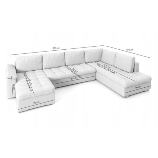 Duży narożnik, funkcja spania, prawy, Vegas, 315x190x85 cm, biel. Zadbaj o kącik wypoczynkowy z komfortowym narożnikiem Vegas! Nowoczesny narożnik z funkcją spania świetnie sprawdzi się w dużym salonie lub pokoju dziennym, oszałamiając swoją estetyką. Klasyczna forma narożnika połączona z funkcjonalnymi rozwiązaniami technologicznymi w postaci podłokietników, luźnych poduszek i trzech pojemników na pościel będzie idealną ozdobą i jednocześnie miejscem spotkań z rodziną i przyjaciółmi.