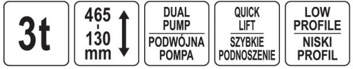 PODNOŚNIK HYDRAULICZNY 3T DWUTŁOKOWY - SZYBKIE PODNOSZENIE