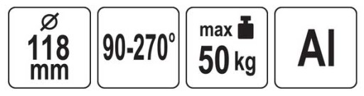 Rękojeść dzielona w połowie długości pozwala na ustawienie przyssawek pod kątem (w zakresie 90-270 stopni). Połączenie rękojeści wyposażone w podziałkę do ustawienia kąta i w śrubę blokującą.