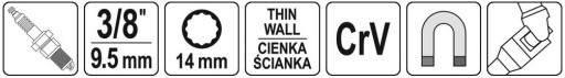 NASADKA CIENKOŚCIENNA DO ŚWIEC 14mm 3/8" Z PRZEGUBEM