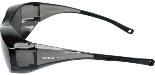 Okulary ochronne marki YATO przeznaczone do ochrony oczu przy pracach ręcznych i mechanicznych. Konstrukcja ramki typu "fit over" umożliwia równoczesne noszenie okularów korekcyjnych.
