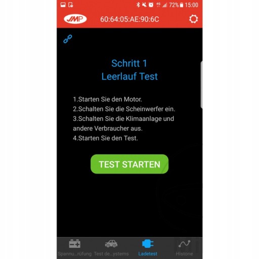 Ponadto nowa aplikacja może być również używana do dokładnego sprawdzania rozruchów (rozruszników, połączeń kablowych itp.) i procesów ładowania (alternator, kable itd.). W przypadku problemów oszczędza to długich poszukiwań.