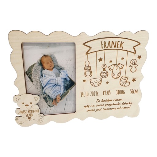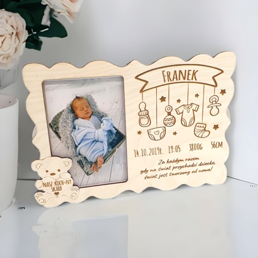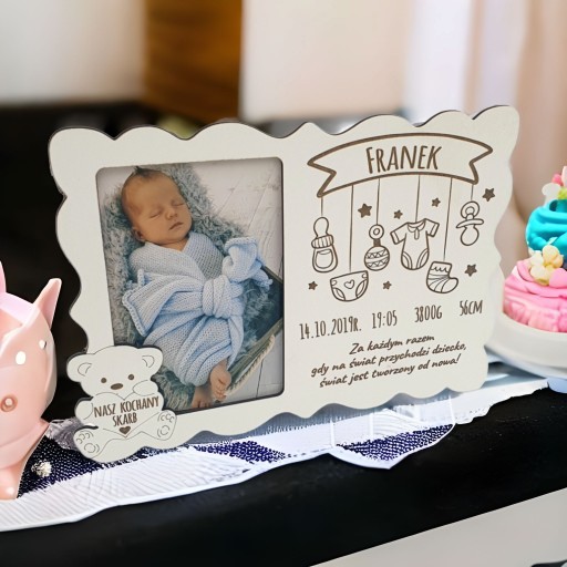 Metryczka z danymi dziecka + ramka na zdjęcie