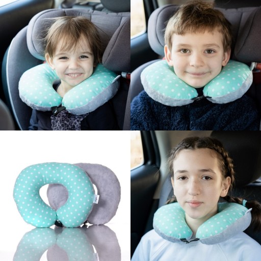 Dzięki zapięciu na nap poduszka nie wędruje po samochodzie tylko może zostać wpięta w zagłówek lub przypięta do pasa.