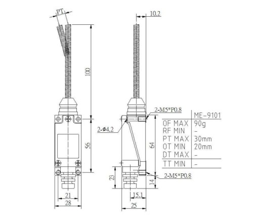 Пружинный рычаг концевого выключателя ME-9101 80 мм