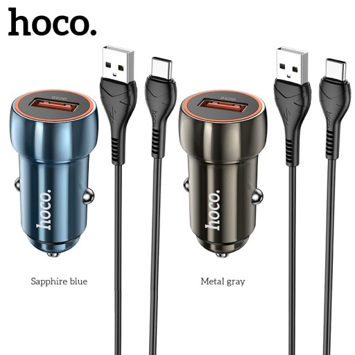hoco Z46 Blue shield to metalowa, szybka ładowarka samochodowa o mocy 3A 18W, z jednym gniazdem USB w standardzie Quick Charge 3.0 / QC3.0, wspierająca takie standardy szybkiego ładowania jak QC3.0 / QC2.0 / Huawei FCP czy Samsung AFC. Zestaw zawiera dodatkowo kabel ze złączem USB Type-C / Typ C o długości 1 M / 100 CM. Ładowarka posiada dodatkowo podświetlone gniazdo USB diodą LED.