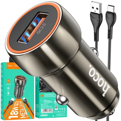 Mocna Szybka ładowarka samochodowa Quick Charge 3.0 QC3.0 3A 18W + kabel USB Typ Typu C Type-C USB-C METALOWA