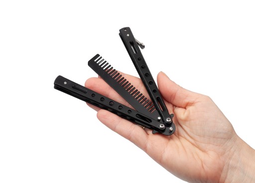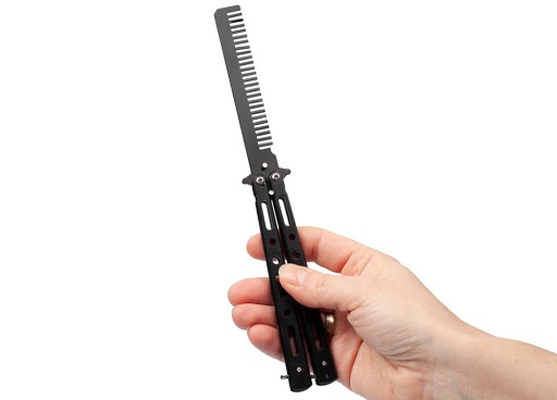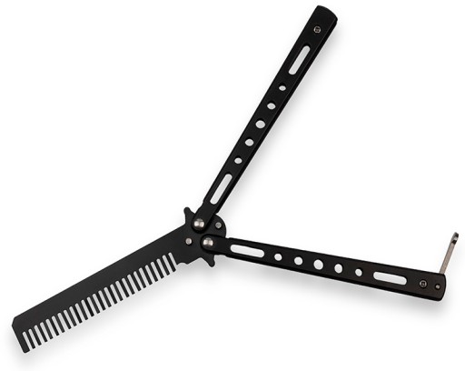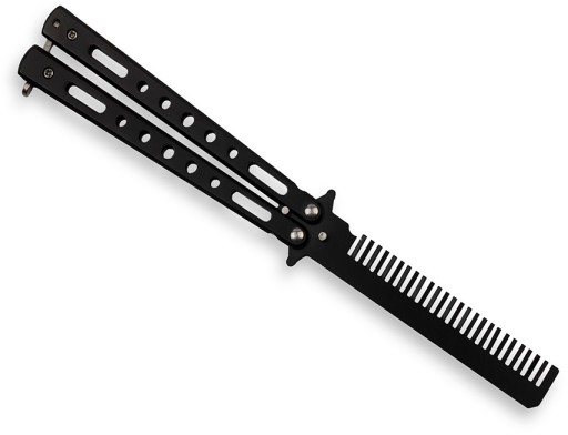 Treningowy nóż motylkowy, który posiada ukryty grzebień zamiast ostrza.