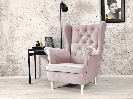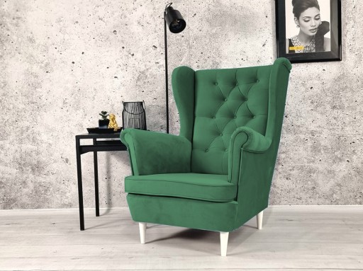 PIĘKNY DUŻY SOLIDNY FOTEL NOBI USZAK W WYBRANYM KOLORZE Z PROSTYMI NÓŻKAMI GŁĘBOKO PIKOWANY GUZIKAMI W KARO