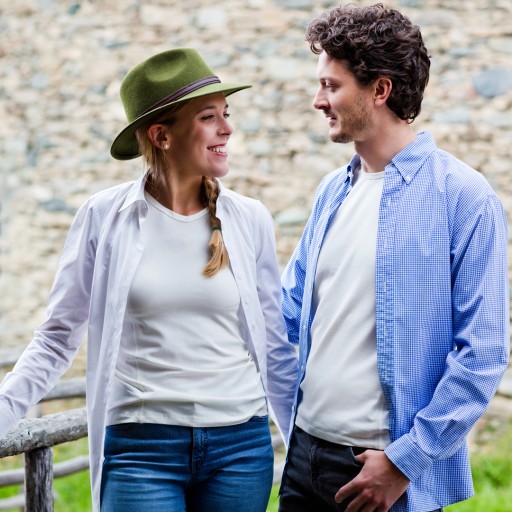 Przód wykonany z włókna bambusowego odprowadza nadmiar ciepła, zapewniając wentylację i świeżość przez cały dzień. Wydłużony tył z wełny merynosowej utrzymuje stałą temperaturę ciała i znakomicie izoluje najbardziej narażone na wychłodzenie części kręgosłupa. Płaskie szwy i elastyczne nici zapewniają wygodę, zapobiegając otarciom. Podkoszulek świetnie sprawdza się przez cały roku: zimą – jako dodatkowe zabezpieczenie przed chłodem pod wierzchnimi warstwami ubrania, latem – jako efektowna część codziennych stylizacji.