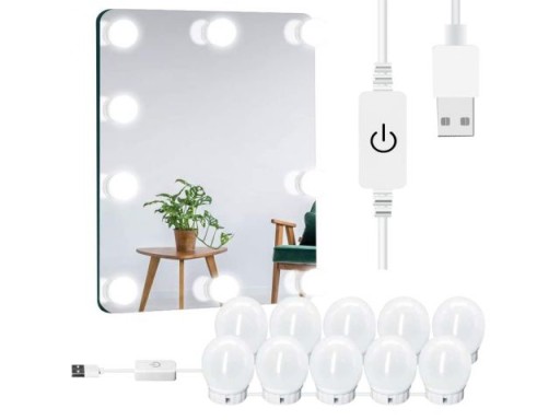 Komplet oświetlenia LED 10 sztuk. Doskonale nadaje się do oświetlenia lustra toaletki lub miejsca nad łóżkiem.
