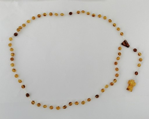 Przestawiamy Państwu różaniec "pełny" wykonany ze srebra i naturalnego bursztynu bałtyckiego.