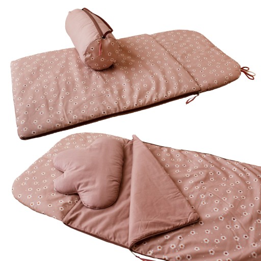 Aby ułatwić dziecku użytkowanie zamek został wszyty po obu stronach śpiwora. Do suwaka dołączona została urocza tasiemka , aby malutkie rączki mogły go wygodnie zamykać i otwierać:) W zestawie znajduje się podusia w kształcie chmurki :) , a całość zapakowana jest w wygodny i poręczny pokrowiec, pasujący do zestawu.