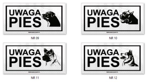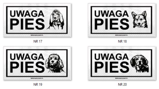 Tabliczka Informacyjna Odblaskowa Uwaga Pies 12x24cm Wzór do wyboru