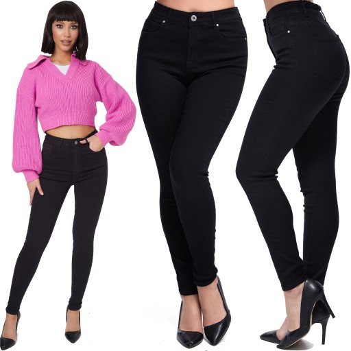 КЛАССИЧЕСКИЕ ЖЕНСКИЕ ДЖИНСЫ С ВЫСОКОЙ ПОСАДКОЙ, ЧЕРНЫЕ _XL/42