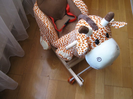 Dla bezpieczeństwa bujak wyposażony jest w fotelik z paskiem zabezpieczającym malucha przed wypadnięciem.