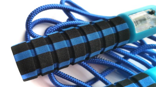Skakanka została wykonana z bardzo trwałego i wytrzymałego tworzywa i solidnej pianki na rączkach