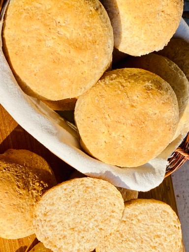 Powyżej bułki grahamki upieczone z naszej mąki graham oraz mąki pszennej typ 500