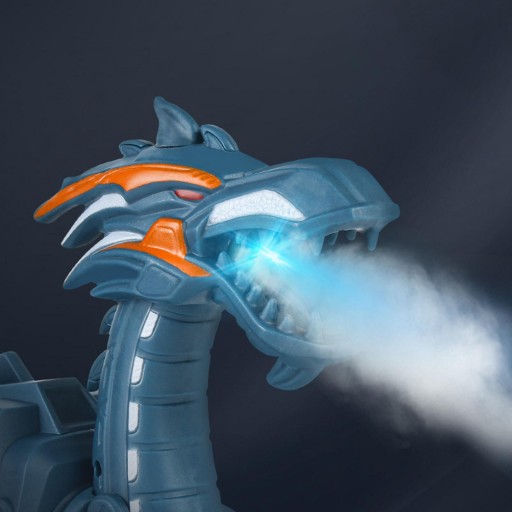 Fantastyczna zabawka dinozaura w sprayu mgły: Dinozaur może rozpylać mgłę czerwonym światłem co kilka sekund, tak jak ogień wybuchał z ust. W głowicy znajduje się wbudowany pojemnik na wodę i wystarczy użyć dołączonej butelki, aby napełnić otwór wodą. Należy pamiętać, że woda w każdym napełnieniu może wytrzymać tylko kilkukrotne rozpylenie mgły spowodowane ograniczeniem objętości wody.