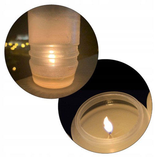 - brak kopcenia w każdym rodzaju szkła (przy prawidłowym dobraniu wkładów do zniczy do wysokości szkła zniczowego)