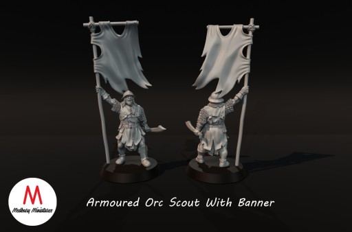 Armoured Orc Scout with Banner - Usługa Druku 3D Figurki do RPG lub Gier Bitewnych
