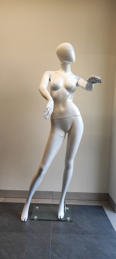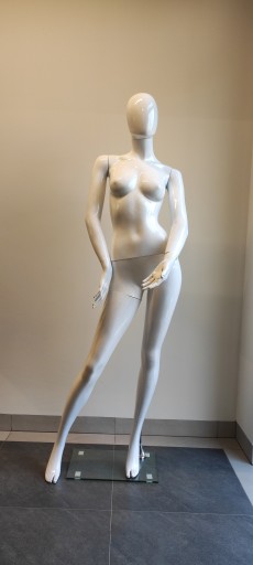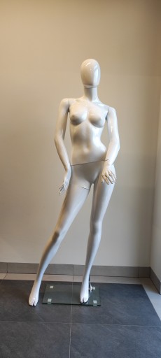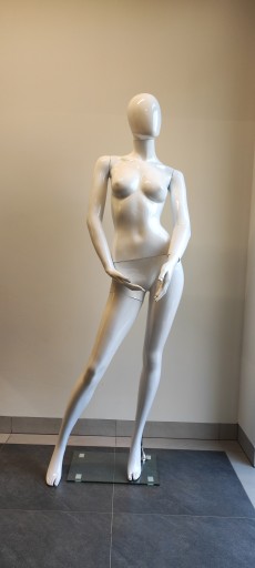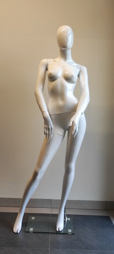 Manekin damski całopostaciowy biały połysk.