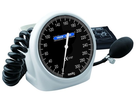 Ciśnieniomierz zegarowy TECH-MED TM-H. Ten aparat diagnostyczny przeznaczony jest do pomiaru ciśnienia systolicznego i diagnostycznego w szpitalach lub innych jednostkach medycznych. Może być również stosowany w domu przez osoby przeszkolone. Charakteryzuje się tym, ze jest mały, lekki, przenośny i dokładny. Ten aparat jest równie efektywny i pożyteczny jak jego odpowiednik sfygmomanometr rtęciowy. Nie powoduje żadnych szkód dla ciała człowieka.