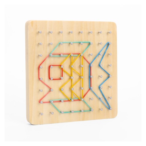 Drewniana Układanka Geoplan od marki WOOPIE z serii GREEN to edukacyjna gra kreatywności i wyobraźni. Zestaw składa się z 48 elastycznych gumek oraz z 20 dwustronnych kart z 40 wzorami o różnym stopniu trudności (3 poziomy). W tej grze dzieci starają się odtworzyć obraz z karty za pomocą gumek - tworząc kontury różnych kształtów np. rybki. Zabawę można urozmaicić o grę w zapamiętywanie i odtwarzanie z pamięci obrazka przez malucha. Dziecko może również wymyślić swój własny kształt/kontr - ogranicza tylko kreatywność i wyobraźnia. Zabawka rozwija zdolności manualne, logiczne myślenie, wyobraźnie i kreatywność, koncentracje oraz zapamiętywanie.