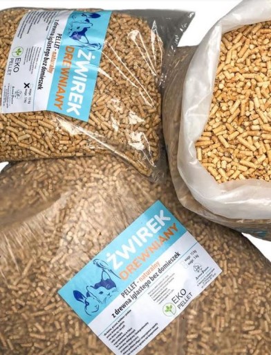 Pellet jest wykonany w 100% z czystej trociny ,jest naturalny i ekologiczny o świeżym zapachu drzew iglastych , idealnie nadaje sie jako żwirek dla zwierząt domowych ,wchłania nieprzyjemne zapachy nie wywołuje alergii u zwierząt. Sposób użycia: Wsypać niewielką warstwę na dno kuwetki lub na dno klatki i codziennie usuwać tylko nieczystości.