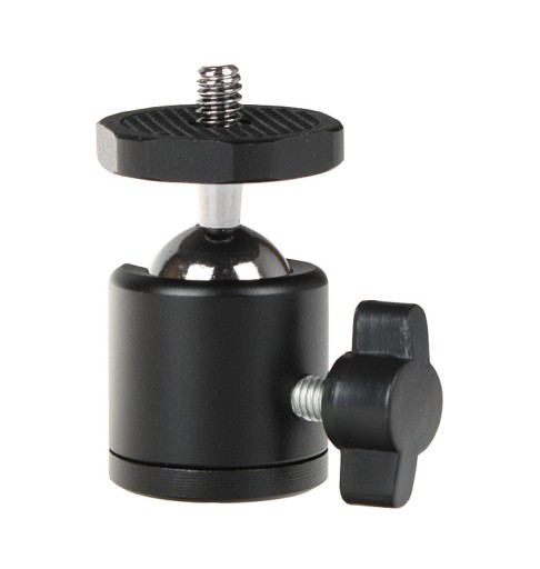 Prezentujemy mini głowicę kulową, pozwalającą zwiększyć funkcjonalność używanego statywu. Dzięki niej ustawimy kamerkę sportową, niewielkich rozmiarów aparat, bądź inne akcesoria fotograficzne (np. lampy ledowe) w dowolnym ułożeniu, znacznie zwiększając ich funkcjonalność. Głowicę blokuje się w wybranym położeniu za pomocą bocznego pokrętła.
